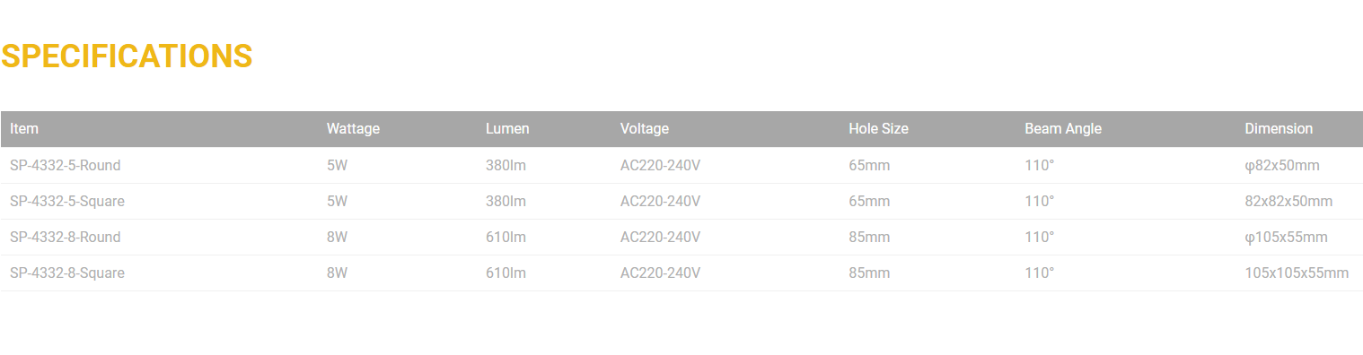 This LED spot light is designed to use at bathroom, IP65 waterproof rated allow to use at shower cubicle or outdoor soffit.